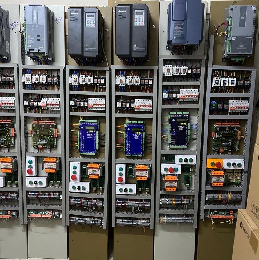 تُعد لوحات التحكم (Control Panels) العقل المدبر لأي مصعد، فهي المسؤولة عن استقبال الأوامر من علب الطلبات وتنظيم حركة الماكينة بدقة وأمان. بناءً على ما تظهره الصور المرفقة، إليك تفصيل لأنواع ومكونات أنظمة التحكم المتقدمة التي تضمن أداءً مثالياً للمصاعد الحديثة: