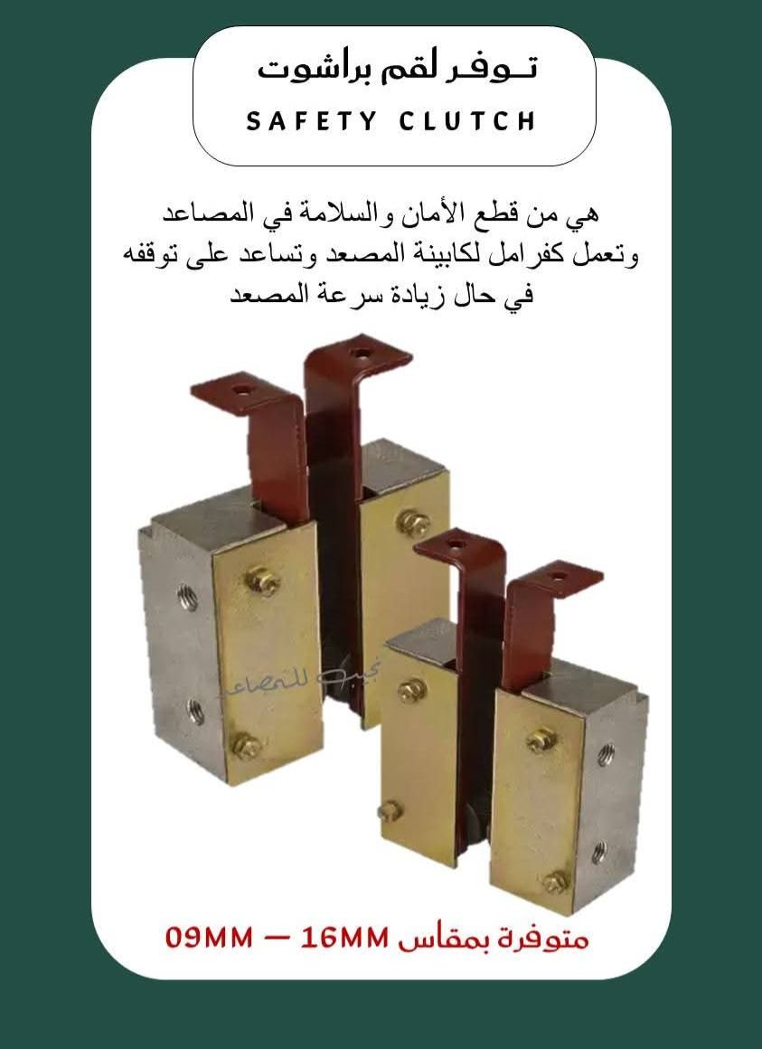 السرعات العالية: في الموديلات التي تصل سرعتها إلى 1.60 متر في الثانية، تُستخدم لقم براشوت “تدريجية” (Progressive Safety Gear) لضمان توقف ناعم وغير مفاجئ.